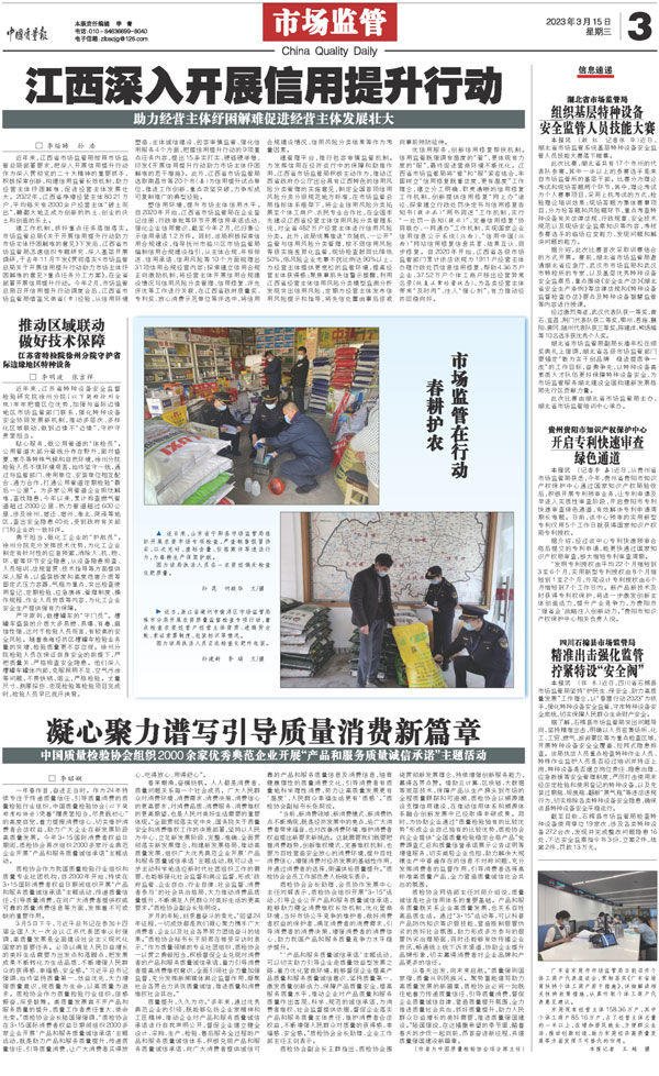 中國質量檢驗協(xié)會組織2000多家優(yōu)秀典范企業(yè)共同組織開展2023年“3·15”產品和服務質量誠信承諾主題活動