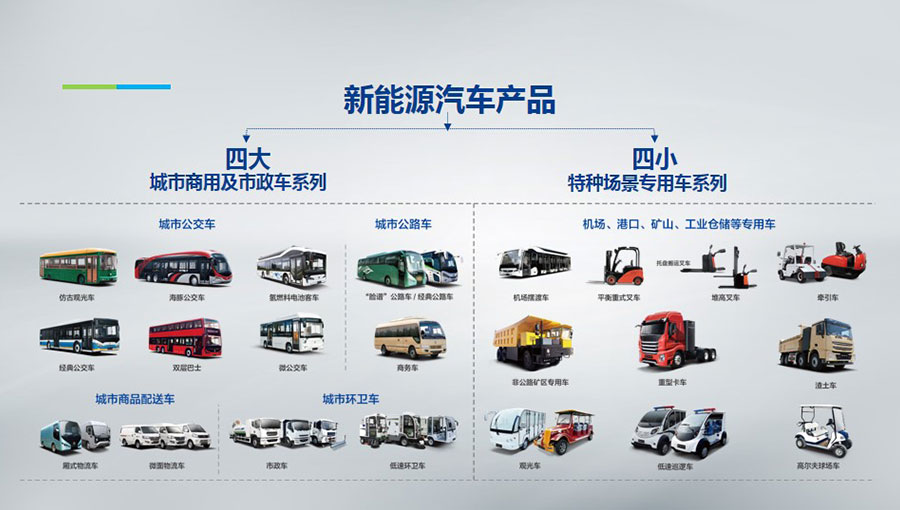 主要產(chǎn)品:純電動物流車和叉車等;氫燃料客車和公交車;純電動客車和公交車;智能儲能系統(tǒng);充電設(shè)備;銀隆鈦鋰電池