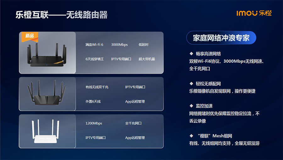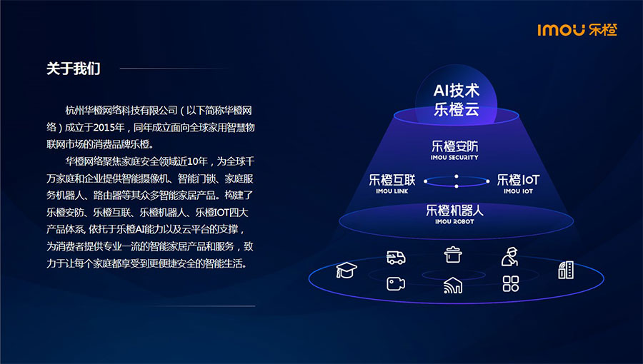 主要產(chǎn)品:樂(lè)橙智能攝像機(jī)、智能門(mén)鎖、門(mén)鈴、路由器等