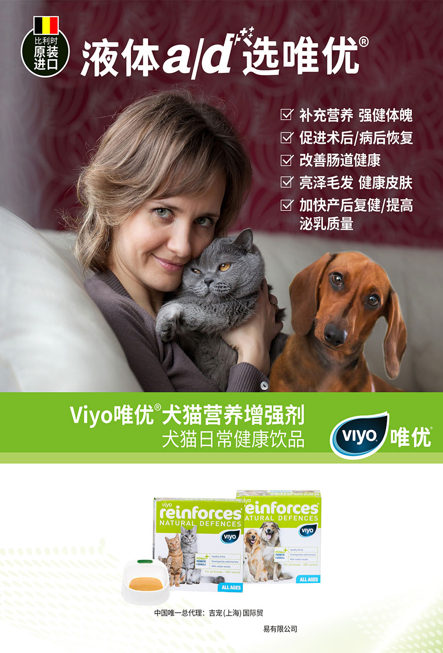 目前吉寵已是瑞典博樂丹、美國倍酷、美國添賜力、比利時唯優(yōu)、德國寵優(yōu)康益生菌、美國水膚寧長效抗菌品牌等眾多優(yōu)秀品牌的中國總代理。吉寵將堅持匠心優(yōu)選,把更多的安全、健康、領(lǐng)先的寵物用品、食品、營養(yǎng)與保健品引入中國,為愛寵的健康與長相陪伴而努力奉獻。