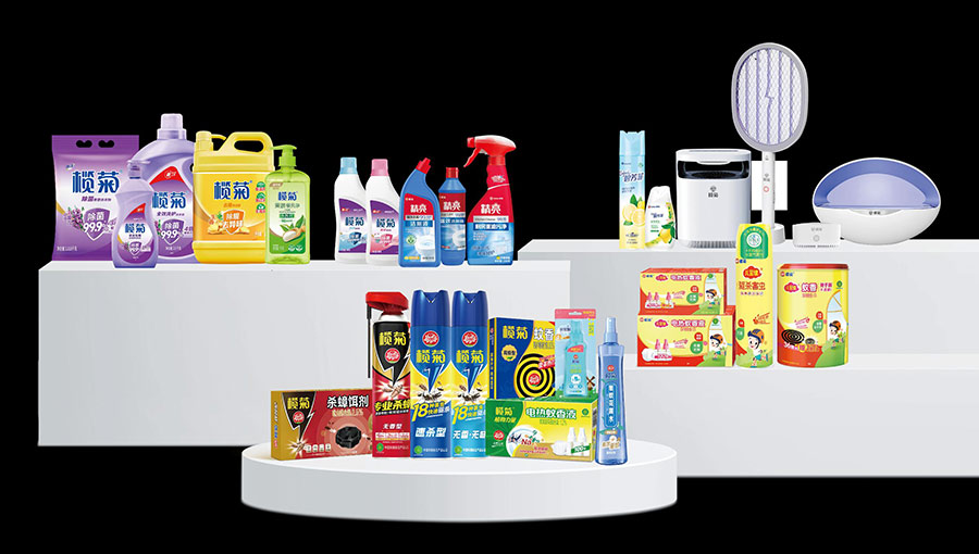 主要產(chǎn)品:欖菊盤式蚊香、電熱蚊香液、驅(qū)蚊液、電熱蚊香片、電蚊香加熱器、殺蟲氣霧劑、殺蟑餌劑、滅蚊燈、電蚊拍、洗衣液、洗潔精、洗衣粉、洗衣皂、洗手液、84消毒液、潔廁精(液)、花露水、空氣清新劑等