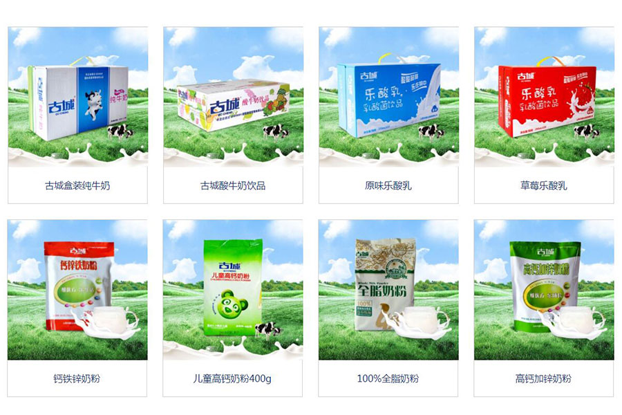主要產(chǎn)品:古城牌液體乳、乳粉、飲料