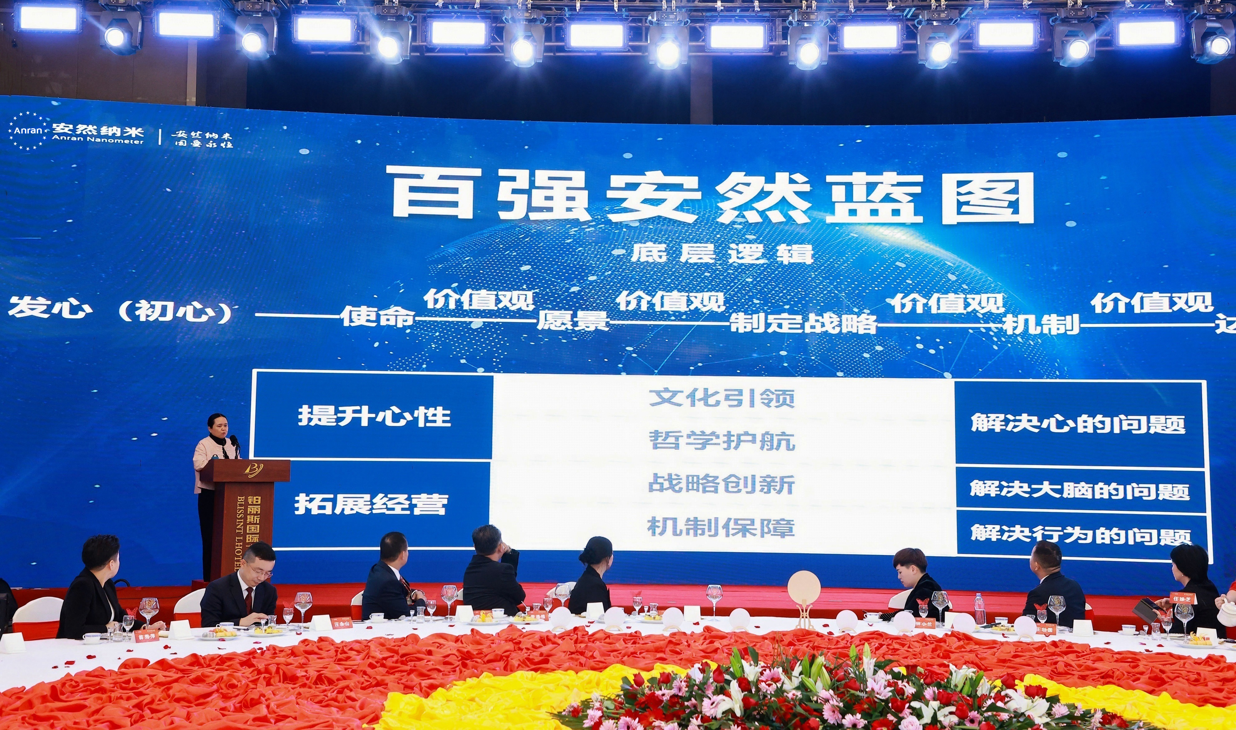 這場榮譽宴的核心,不止于巔峰相聚的榮光,更在于為精英們注入決勝未來的強大動能。晚宴伊始,副董事長、總裁梁浩女士登臺賦能,以“百強安然”深度拆解市場戰(zhàn)略,為市場伙伴解讀成功密碼、指明前行方向。
