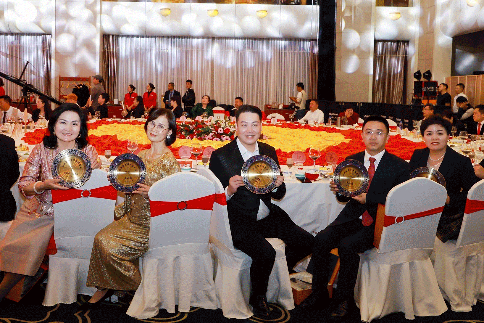 安然集團董事長劉潤東先生,副董事長、總裁梁浩女士,副董事長劉金坤先生攜高管團隊,熱烈歡迎來自全國各地的優(yōu)秀市場伙伴。大家齊聚一堂,共進晚宴,共享榮耀時刻。