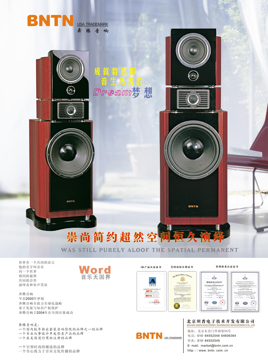 主要產品:BNTN奔騰音響、家庭影院