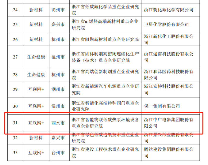 日前,浙江省科學(xué)技術(shù)廳公示了2023年擬認(rèn)定省重點(diǎn)企業(yè)研究院名單。其中,浙江中廣電器集團(tuán)股份有限公司的“浙江省智能物聯(lián)低碳熱泵環(huán)境設(shè)備重點(diǎn)企業(yè)研究院”成功入選省重點(diǎn)企業(yè)研究院。