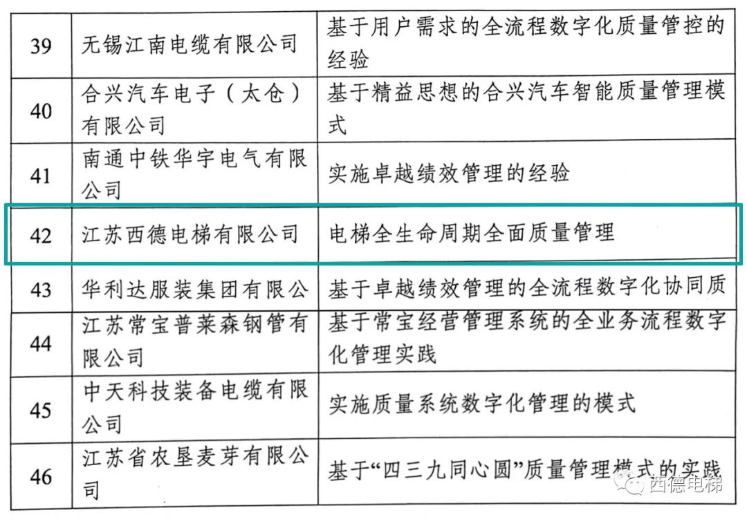 西德電梯獲評2023年江蘇省“質(zhì)量標(biāo)桿”企業(yè)