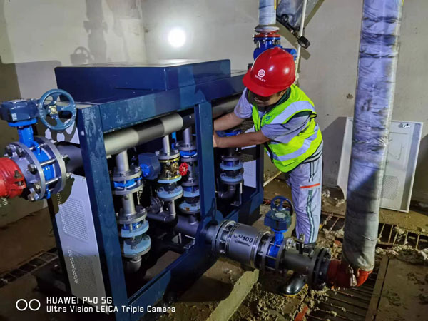 在武漢的安裝人員現(xiàn)場隨時待命,公司的技術(shù)負責人隨時指導,在2月4日凌晨3時25分完成現(xiàn)場安裝調(diào)試,投入正常通水運行。