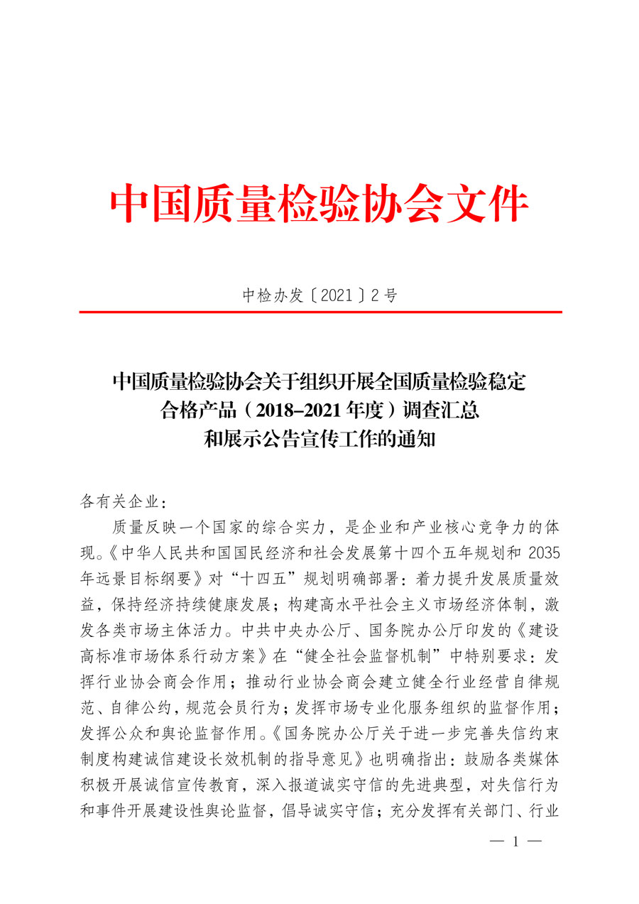 中國質(zhì)量檢驗協(xié)會關于組織開展全國質(zhì)量檢驗穩(wěn)定