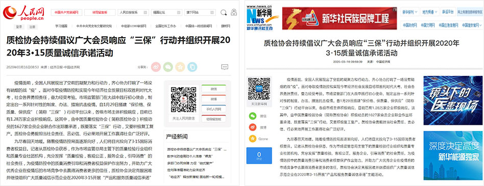 人民網(wǎng)《質(zhì)檢協(xié)會(huì)持續(xù)倡議廣大會(huì)員響應(yīng)“三?!毙袆?dòng)并組織開展2020年3·15質(zhì)量誠(chéng)信承諾活動(dòng)》
