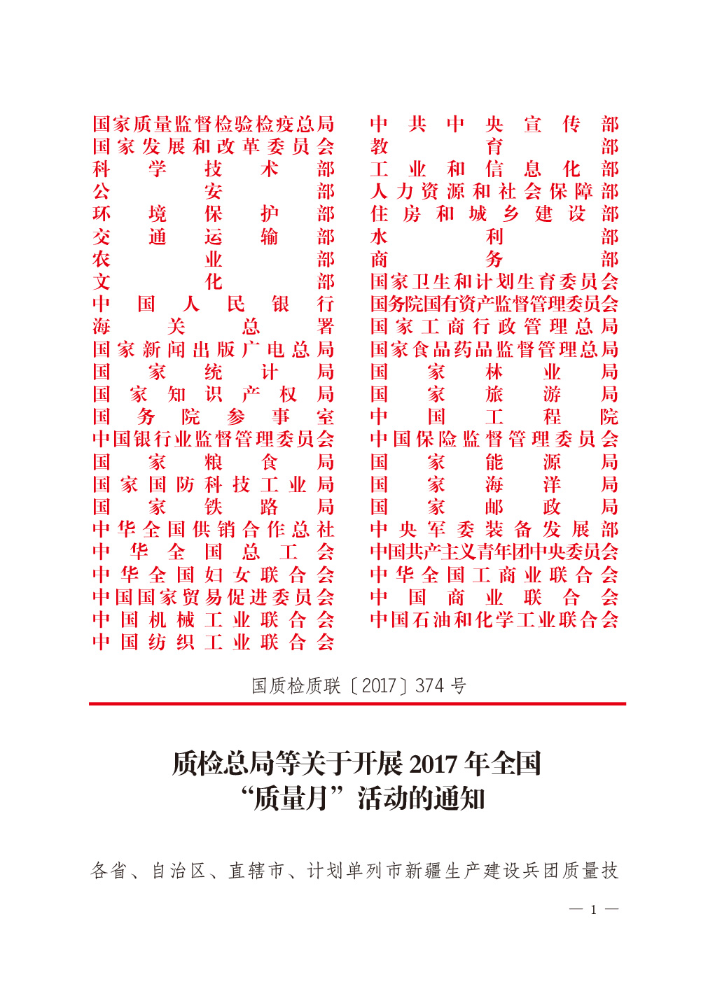 2017年8月23日,國家質(zhì)檢總局和中共中央宣傳部、國家發(fā)改委、科學(xué)技術(shù)部、工業(yè)和信息化部、公安部、農(nóng)業(yè)部、商務(wù)部、國家工商總局、國家食藥監(jiān)總局等47個(gè)單位(部門)聯(lián)合印發(fā)的《質(zhì)檢總局等關(guān)于開展2017年全國“質(zhì)量月”活動(dòng)的通知》(國質(zhì)檢質(zhì)聯(lián)〔2017〕374號)再次明確安排部署中國質(zhì)量檢驗(yàn)協(xié)會:繼續(xù)組織開展“企業(yè)質(zhì)量誠信倡議”專題活動(dòng),開展質(zhì)量誠信溯源和防偽標(biāo)識應(yīng)用服務(wù)專項(xiàng)推廣活動(dòng);同時(shí),還將中國質(zhì)量檢驗(yàn)協(xié)會服務(wù)工作核心價(jià)值“傳遞質(zhì)檢信任,引導(dǎo)質(zhì)量消費(fèi)”列入2017年全國“質(zhì)量月”活動(dòng)宣傳口號。