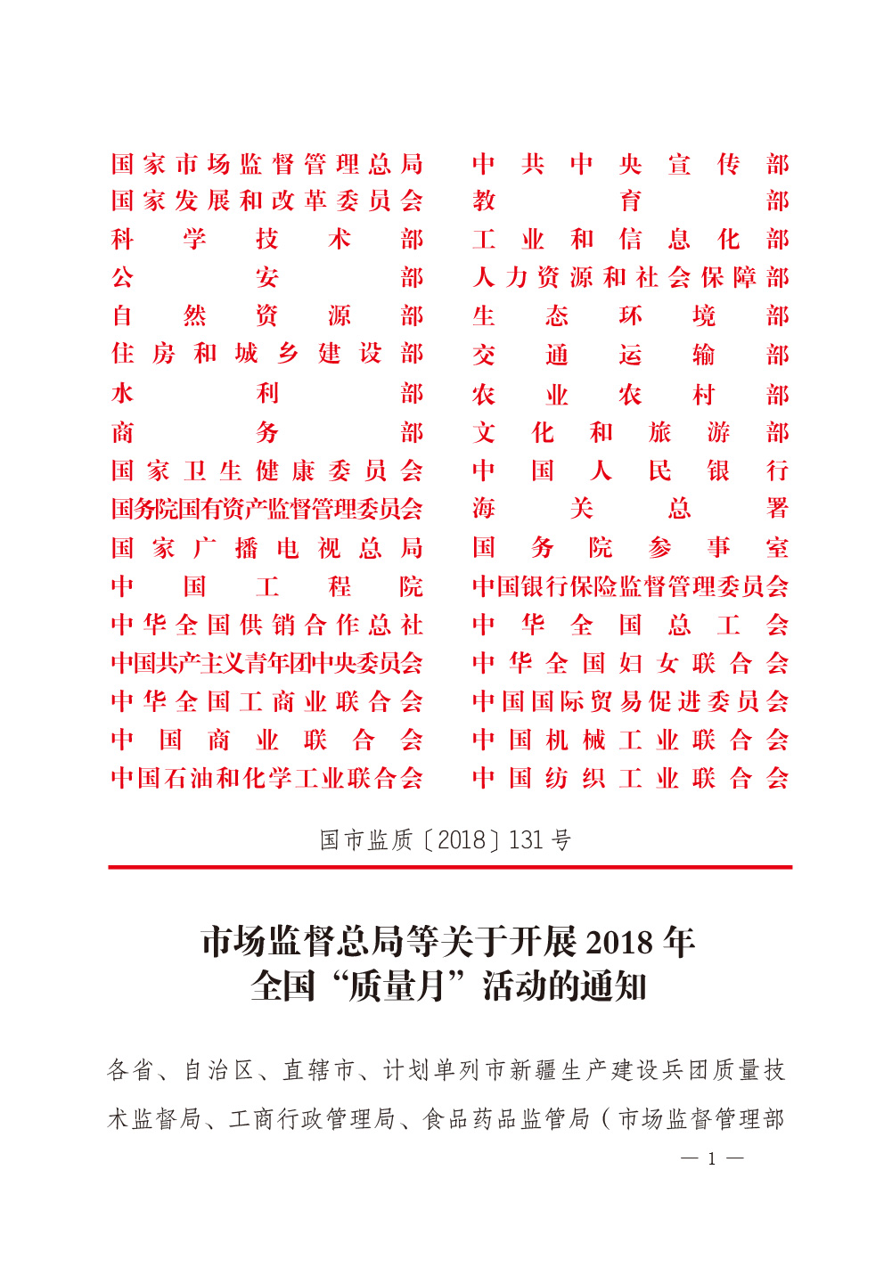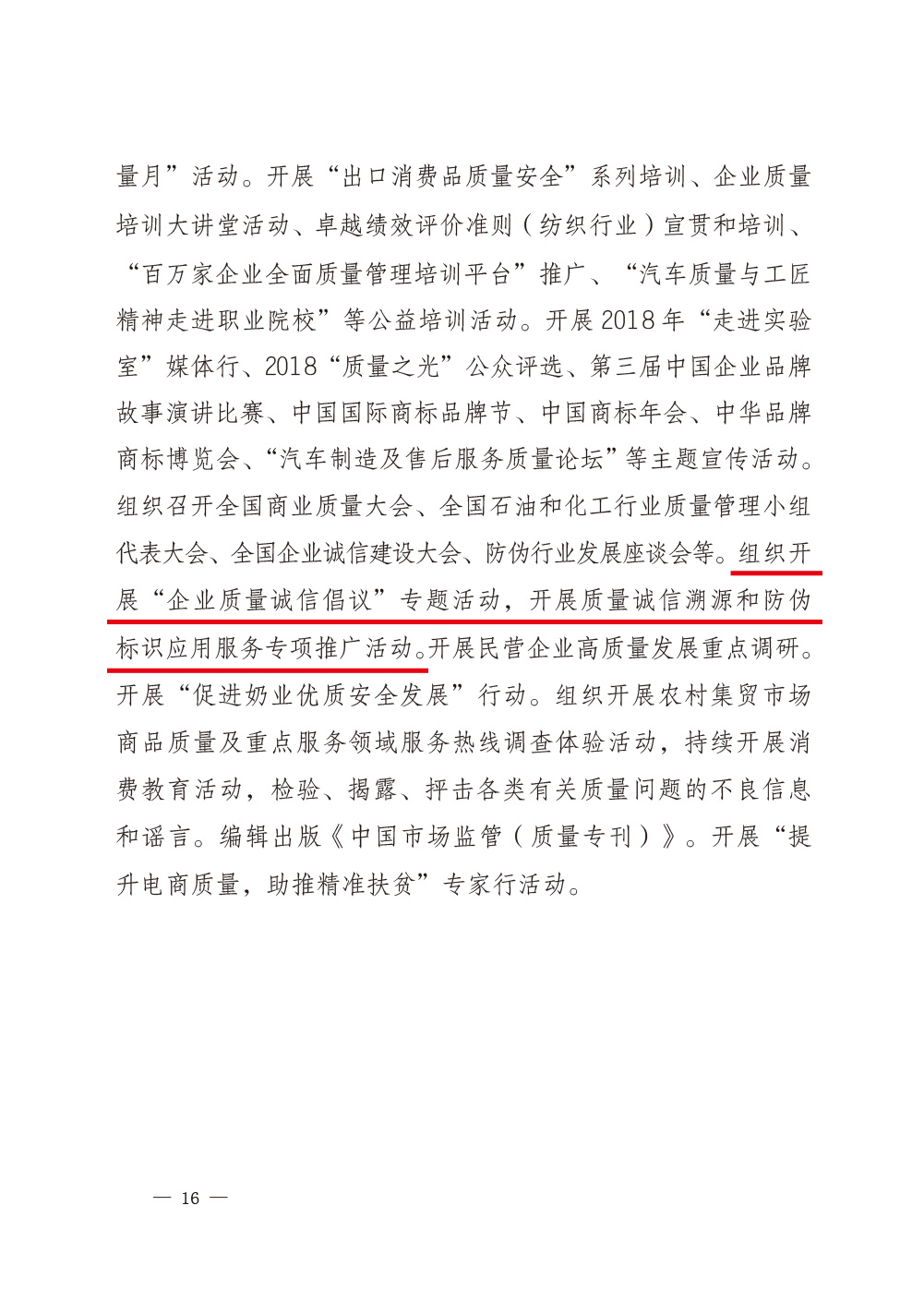 2018年8月16日,國家市場監(jiān)督管理總局、中共中央宣傳部、國家發(fā)展和改革委員會、教育部、科學(xué)技術(shù)部、工業(yè)和信息化部、公安部、人力資源和社會保障部等2018年全國“質(zhì)量月”活動(dòng)主辦單位聯(lián)合印發(fā)《市場監(jiān)管總局等關(guān)于開展2018年全國“質(zhì)量月”活動(dòng)的通知》(國市監(jiān)質(zhì)〔2018〕131號),并在《2018年全國“質(zhì)量月”主辦單位開展的主要活動(dòng)》中明確部署中國質(zhì)量檢驗(yàn)協(xié)會:組織開展“企業(yè)質(zhì)量誠信倡議”專題活動(dòng),開展質(zhì)量誠信溯源和防偽標(biāo)識應(yīng)用服務(wù)專項(xiàng)推廣活動(dòng)。