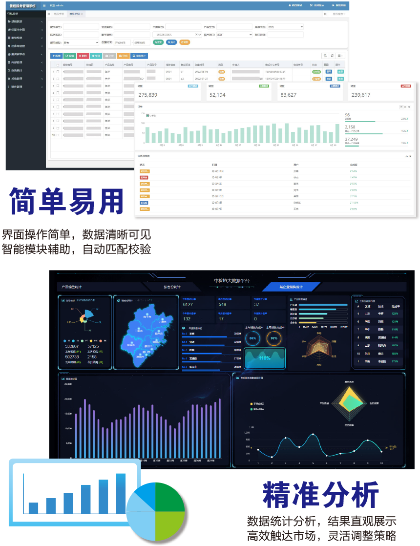 應(yīng)用說明:基于中國質(zhì)量檢驗(yàn)協(xié)會防偽溯源和物流管理服務(wù)系統(tǒng)的一品一碼,采用數(shù)字化的手段統(tǒng)一管理售后維修體系,解決目前企業(yè)存在的手動(dòng)工作量大,操作繁瑣和數(shù)據(jù)分散不方便統(tǒng)計(jì)等問題,串聯(lián)產(chǎn)品管理過程的每一個(gè)環(huán)節(jié),打通整個(gè)業(yè)務(wù)的數(shù)據(jù)鏈條,優(yōu)化工作內(nèi)容,提升工作效率。實(shí)現(xiàn)銷售單自動(dòng)導(dǎo)入、維修標(biāo)簽打印、過程統(tǒng)一管理、信息匯總操作、任務(wù)定時(shí)執(zhí)行、郵件通知、OCR智能識別圖像和維修價(jià)格自動(dòng)計(jì)算等功能,增強(qiáng)企業(yè)的市場綜合競爭力。