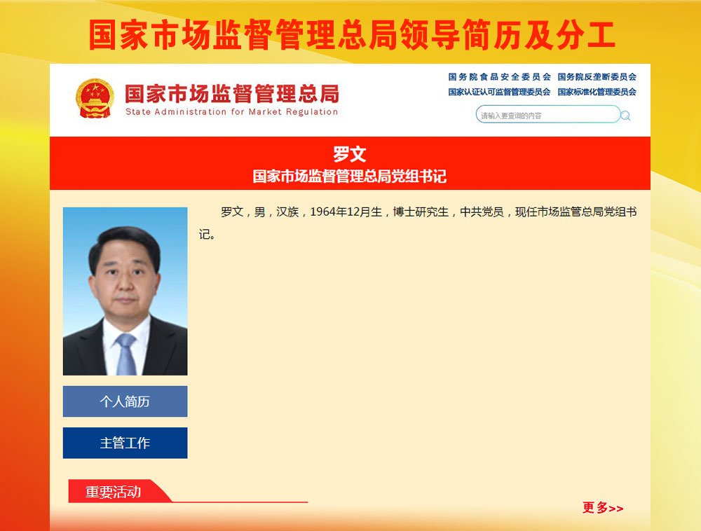 國家市場監(jiān)督管理總局主要職責(zé)是,負(fù)責(zé)市場綜合監(jiān)督管理,統(tǒng)一登記市場主體并建立信息公示和共享機(jī)制,組織市場監(jiān)管綜合執(zhí)法工作,承擔(dān)反壟斷統(tǒng)一執(zhí)法,規(guī)范和維護(hù)市場秩序,組織實(shí)施質(zhì)量強(qiáng)國戰(zhàn)略,負(fù)責(zé)工業(yè)產(chǎn)品質(zhì)量安全、食品安全、特種設(shè)備安全監(jiān)管,統(tǒng)一管理計(jì)量標(biāo)準(zhǔn)、檢驗(yàn)檢測、認(rèn)證認(rèn)可工作等。