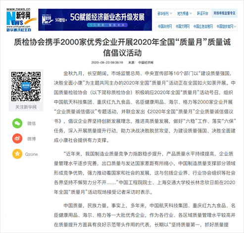 新華網(wǎng):質(zhì)檢協(xié)會(huì)攜手2000家優(yōu)秀企業(yè)開展2020年全國“質(zhì)量月”質(zhì)量誠信倡議活動(dòng)