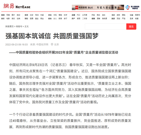 網(wǎng)易網(wǎng):強(qiáng)基固本筑誠信 共圓質(zhì)量強(qiáng)國夢——中國質(zhì)量檢驗協(xié)會組織開展2022年全國“質(zhì)量月”企業(yè)質(zhì)量誠信倡議活動