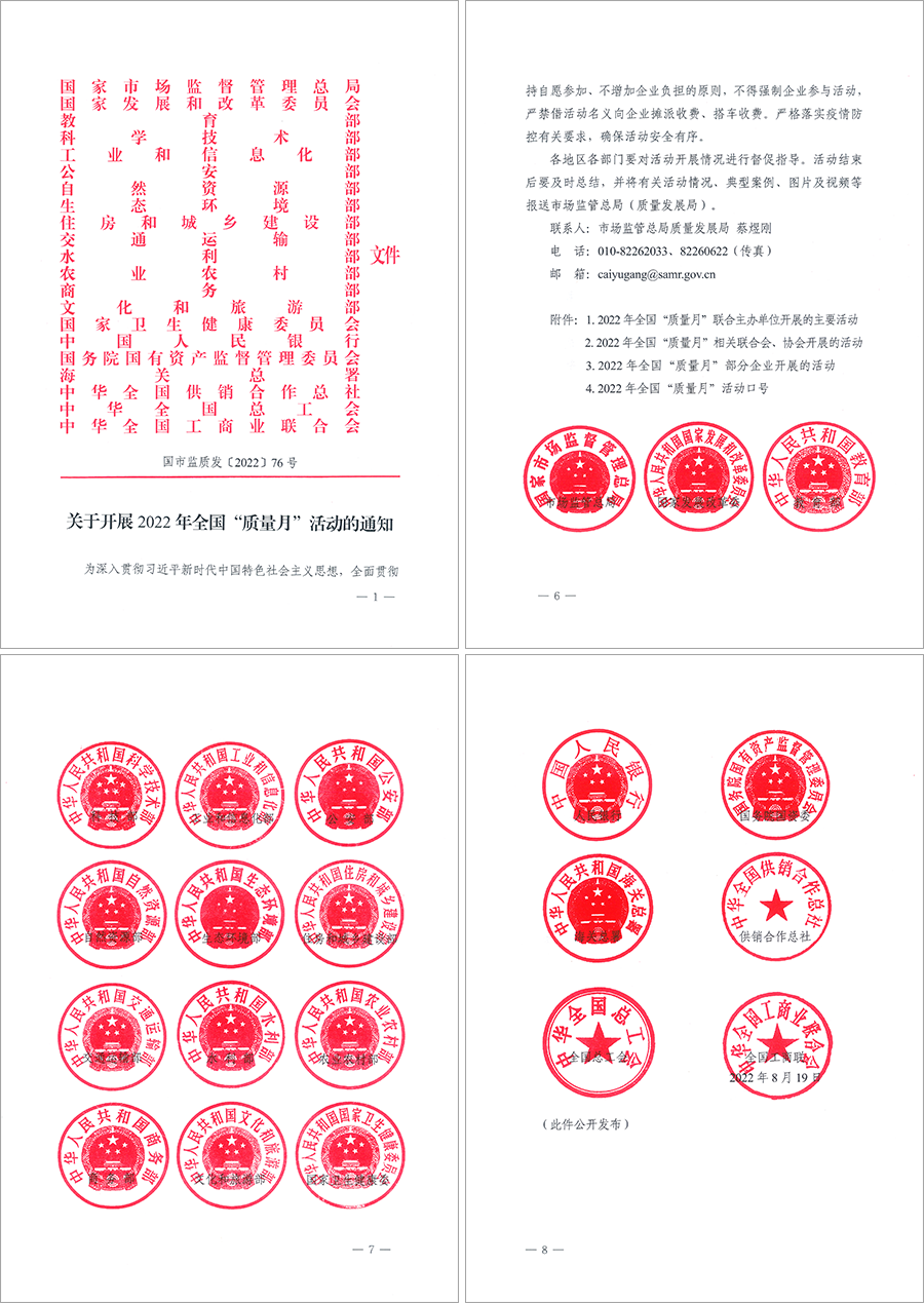 全國“質(zhì)量月”活動是我國長期開展的一項重大質(zhì)量活動,是在政府主管部門的倡導(dǎo)和部署下,聯(lián)合國家相關(guān)部委(部門)和單位并發(fā)動廣大企業(yè)與全社會積極參與,一年一度以多種形式于每年9月在全國范圍內(nèi)組織開展跨時一個月并旨在提高全民質(zhì)量意識和質(zhì)量水平的國家級大型質(zhì)量專題活動,全力營造人人關(guān)心質(zhì)量、重視質(zhì)量、創(chuàng)造質(zhì)量、享受質(zhì)量的良好社會氛圍,推進(jìn)建設(shè)質(zhì)量強國。
